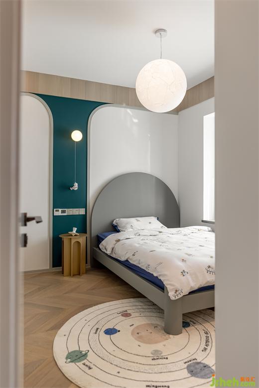 南京家裝設(shè)計以宇航員為主題的兒童房,大面積運(yùn)用撞色,為孩子打造了屬于自己的夢想航空站。