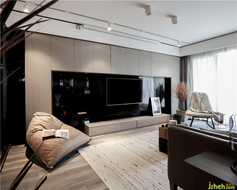 客廳原頂?shù)跹b,配合軌道燈,增強空間縱深感