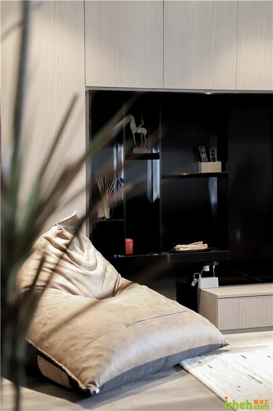 主臥隱形門,與沙發(fā)背景一體設(shè)計