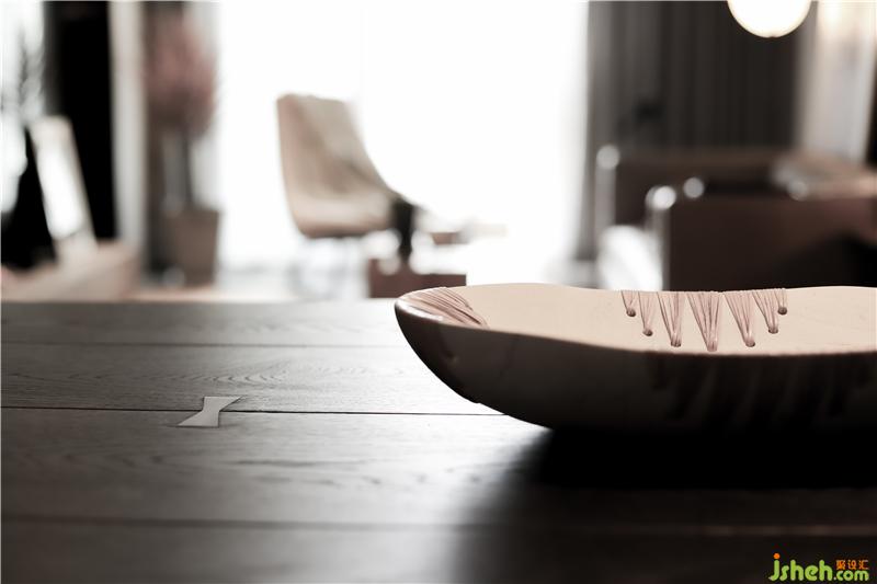 榫卯結(jié)構(gòu)餐桌紋理,碰撞墻面石材的拼接和質(zhì)感,更顯高級