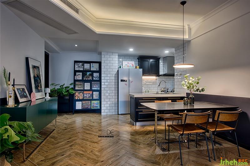 這是小歐和夏夏的第一套房,充滿了對未來美好生活的期待。為了讓這個(gè)“愛家”更有溫度,室內(nèi)設(shè)計(jì)師將原始結(jié)構(gòu)中廚房的格局打開把餐廳、廚房及客廳形成一個(gè)空間,將兒童房和客廳的共墻打開,擴(kuò)大兒童房儲存空間。不僅增加了公共區(qū)的空間,也提升了整個(gè)空間的開闊感和明亮度。老式新做,復(fù)古色調(diào)搭配緊致家具和飾品,打造出獨(dú)具個(gè)性的居家環(huán)境。
