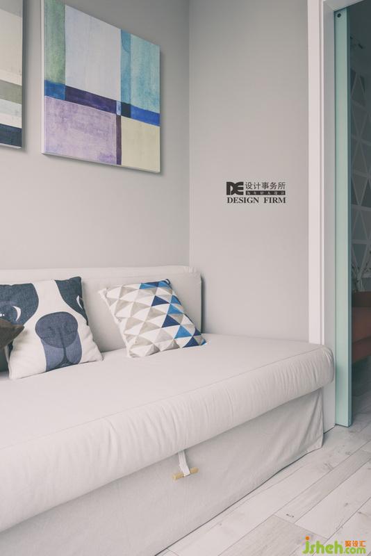 所以設計公司在空間結(jié)構(gòu)上,放棄了原有餐廳的位置,加大了客廳的使用空間,增加休閑區(qū)與閱讀區(qū),入戶的空間從原本狹長的過道改為現(xiàn)在開闊的西廚,讓空間有更多的變化。