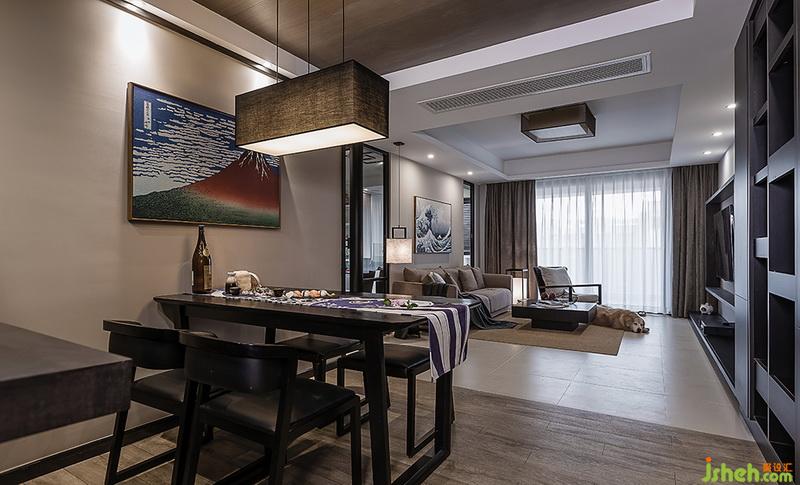 廚房和餐廳之間居酒屋的設(shè)計(jì)靈感來自近兩年大熱的溫暖日劇《深夜食堂》。設(shè)計(jì)公司這樣的一個設(shè)置既豐富了日式的主題概念,也是廚房與餐廳之間互動的橋梁。做飯不僅僅是一個人的家務(wù),也可以是多人的有趣互動,站在廚房能夠清楚明白的和餐廳的親朋好友進(jìn)行對話,端菜也不用進(jìn)出來回跑腿,只需要通過這個小“酒臺”就可以輕松遞至餐廳。也可以當(dāng)作一個小酒吧來使用,具有家庭情趣,實(shí)用也非常符合主人的審美。