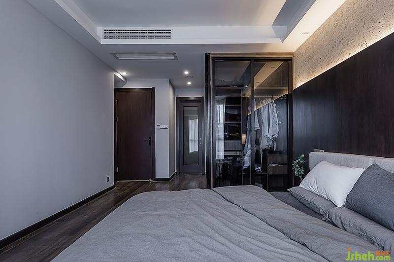 主臥床頭設(shè)計(jì)公司用木飾面做了半個墻面,上下分開,暗藏一整條燈帶,光線打出來,照在有木質(zhì)紋理的墻紙上,實(shí)地的看更具品質(zhì)感。整體簡潔的設(shè)計(jì)感讓人視覺得到享受。