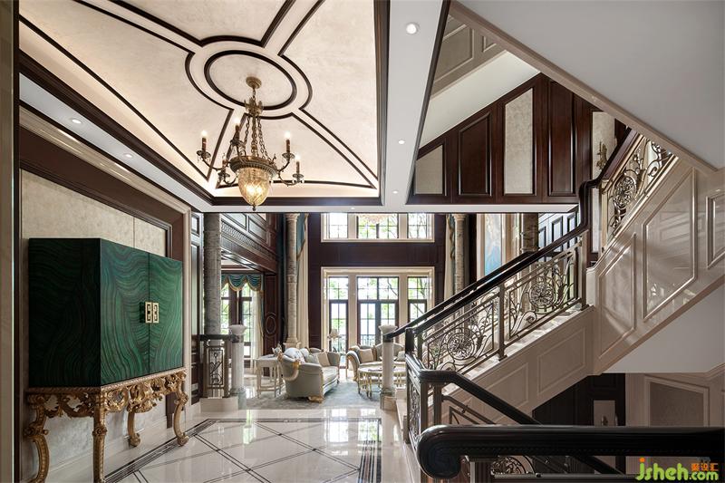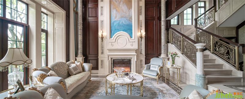 一樓行政會客廳運用巴洛克手法的石柱與弧線感的塑造表現(xiàn)中西文化的融合,空間內(nèi)的美感由飾面上的紋理一層層延展開來,仿佛低語著古老的詩歌。