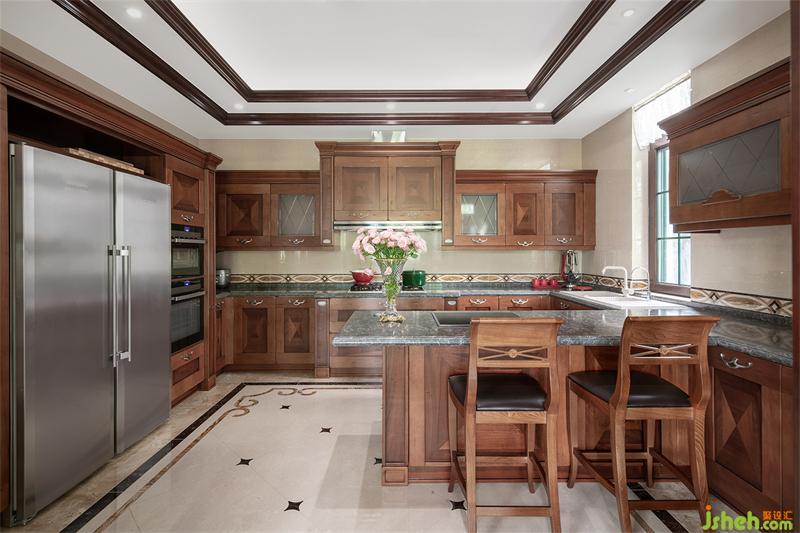 家庭廳一側(cè),餐廚空間充盈著日常的人間煙火氣,純粹平淡的幸福在此間緩緩流淌,靜享一日三餐與天倫之樂。