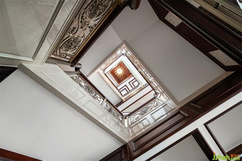 拾階而上,精美繁復(fù)的儲物柜與大理石拼花相映,來到開闊的二層居住空間。