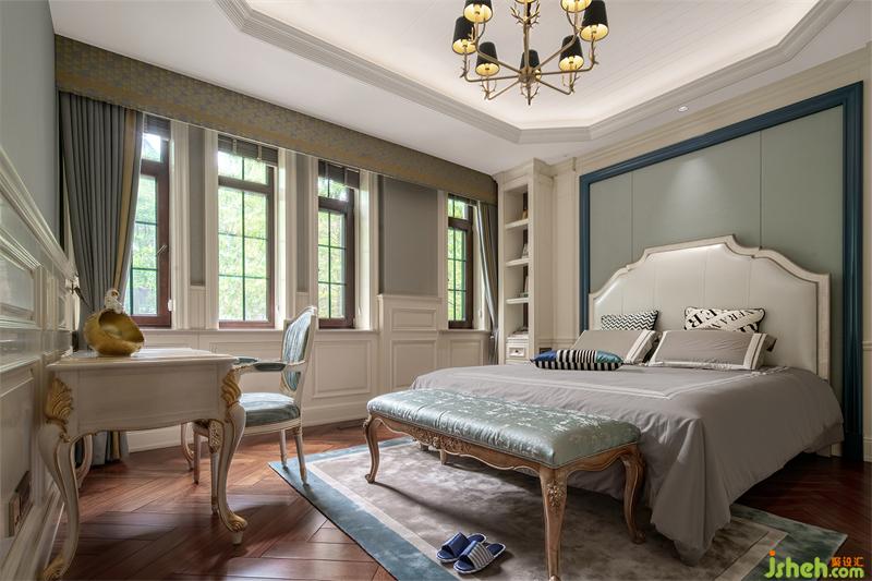 別墅設(shè)計請將自然森林的色彩涂抹在少女的臥室,伊麗莎白二世的王冠染上了藕粉色,配色清新柔和。明明是色板上的對比色,卻在這一方空間里相互調(diào)和,營造出一抹恰到好處的韻律美。