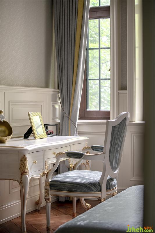 兒子房的暖白色調(diào)帶來安靜舒適的體驗,冷靜沉穩(wěn)的蔚藍拼接低調(diào)的淡藍,窗外四季景致流轉(zhuǎn),透過玻璃照進室內(nèi),給空間增添了許多活力。