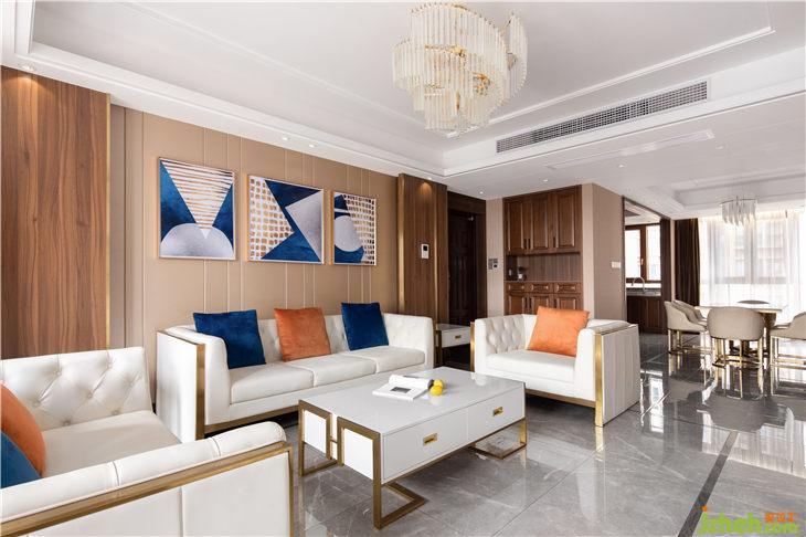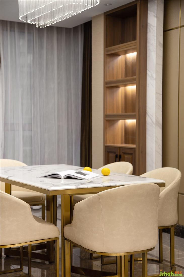 本案結(jié)合白、灰、香檳金等大氣典雅的調(diào)子,在設(shè)計方向從“輕奢”入手。正如馬蒂斯所說,“繪畫應(yīng)該是純粹美感經(jīng)驗的體現(xiàn),其目的不在思想性和喻意,而在于線條、色彩、形態(tài)的愉悅和舒適。色彩與線條都是力量,創(chuàng)造的秘密就在于利用并平衡這些力量?!边@句話挪用到設(shè)計也是極為合適。在白色加香檳金的基礎(chǔ)上點綴油畫藍,使整個空間更具有詩情畫意。仿佛置身于春季的巴黎香榭麗舍的街道,爛漫而風(fēng)情。
