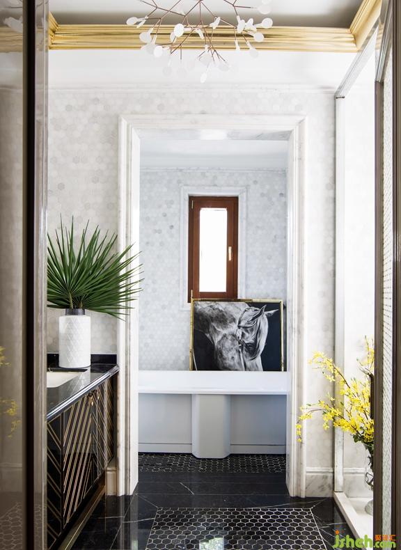 地面和墻面所用的六邊形的蜂巢狀大理石飽含家的寓意。同時(shí),眾多綠色植物的環(huán)繞,讓人不出門(mén)便貼近大自然,增添了空間的生機(jī)與詩(shī)意。為了使光線更佳充足,一層門(mén)廳被加建出來(lái),同時(shí)加開(kāi)了餐廳的門(mén),客廳部分的窗戶面積被適量加大,于是引來(lái)的光芒在空間起舞,啟發(fā)著居住者的精神世界。
