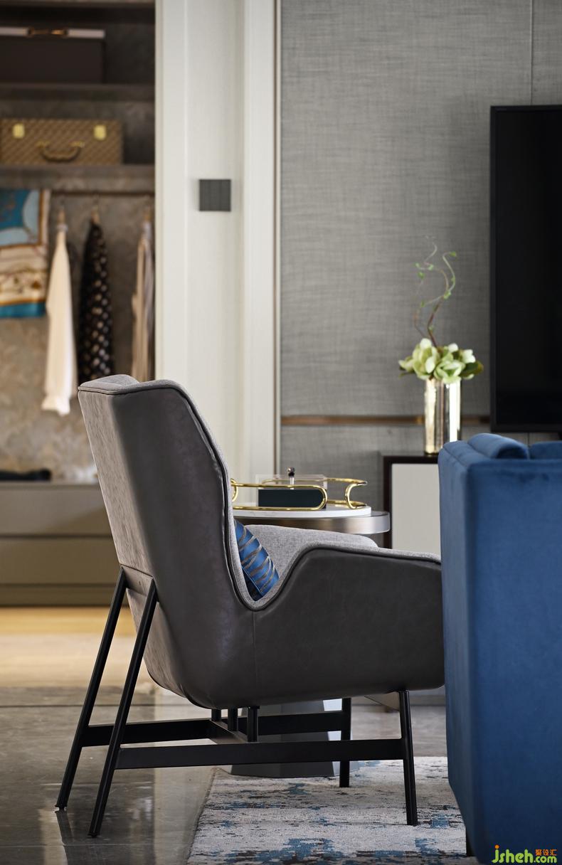 藍色通??梢杂脕黼[喻紳士,也因此成為這個空間的主旋律。如同大海的藍色既有的深邃明凈,有時又通過揚起的浪花給人以熱情奔放的印象。