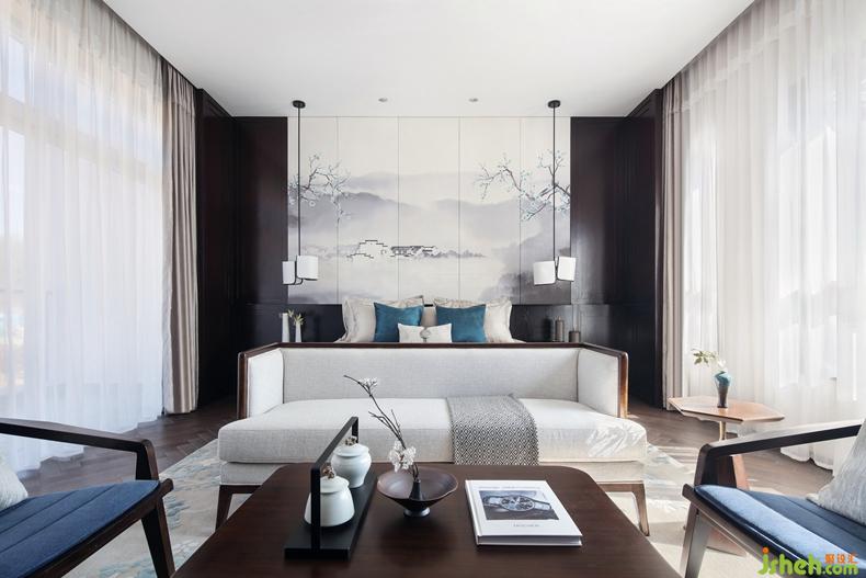 臥室充滿俊雅的味道,與空間整體用色保持一致。主人房的別墅裝修設(shè)計(jì)于簡(jiǎn)致對(duì)仗中富有變化。床頭背景墻的云霧、山水、桃花、水墨建筑,傳遞一派煙雨江南的溫潤(rùn)和典雅。茶幾上的陶瓷小品恰與背景墻上的桃枝形成呼應(yīng)。