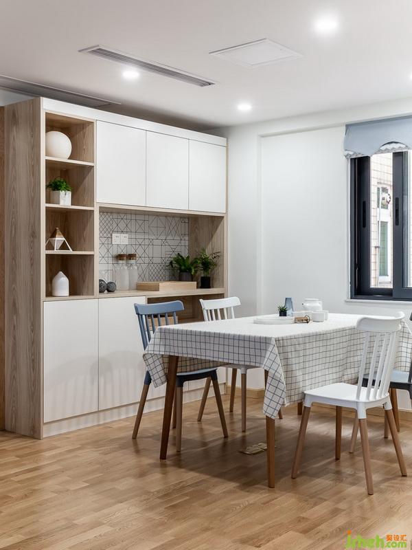 本案是三口之家,與長輩一起居住,案主是位大學(xué)教授,在整個(gè)設(shè)計(jì)過程中,他希望呈現(xiàn)的是溫暖明亮的整體感,以及提出了對(duì)于書房,餐廳空間合理分配的要求。原始戶型是客餐廳一體的三房結(jié)構(gòu),餐廳通風(fēng)采光相對(duì)較差,儲(chǔ)物空間不足,所以在設(shè)計(jì)上從改善格局與儲(chǔ)物功能合理化上著手。進(jìn)門設(shè)計(jì)了玄關(guān)區(qū)域,增加鞋柜收納空間,考慮廚房本身操作空間不足,由此冰箱與鞋柜做了一體的設(shè)計(jì)。廚房空間,整體的色調(diào)以白色為基礎(chǔ)色,木色為主要色調(diào)強(qiáng)調(diào)出北歐日式清新自然的感覺,使用功能上把原先僅有2.5米的L型的格局變成5米的U型使用結(jié)構(gòu),大大增加了操作面以及收納空間,讓案主媽媽不用再為收納而煩惱。原有餐廳區(qū)域設(shè)計(jì)成書房區(qū)域,書柜上的設(shè)計(jì)更是把成墨菲床與儲(chǔ)物柜書柜三者結(jié)合到一體,使整個(gè)收納空間更加的多元化,書房再不單單是書房,而是賦予了它客房的身份,色彩上我們繼續(xù)延用了白色與木色的結(jié)合,整個(gè)空間溫馨而舒適。同時(shí)書房最大的亮點(diǎn)是采用了半開放的手法,把客廳與書房相互融合,玻璃材質(zhì)的推拉門,使客廳書房更加通透,讓案主在工作之余,更能享受午后安逸。餐廳區(qū)域,原本這是一個(gè)書房的位置,原有結(jié)構(gòu)客餐廳的分區(qū)并不明顯,動(dòng)線不太合理,通風(fēng)采光也比較差,經(jīng)過改善后,既擴(kuò)大餐廳區(qū)域,也把客餐廳形成相互對(duì)流的狀態(tài),增加通風(fēng)采光度,并且額外打造西廚區(qū)域,西廚的采用表達(dá)了案主對(duì)與于生活情調(diào)的小追求??蛷d是書房與餐廳的結(jié)合點(diǎn),三者是相互交融的,動(dòng)線更加的合理,客廳整體組合柜的色調(diào)以白色為基調(diào),木色作為點(diǎn)綴,充分?jǐn)U大收納儲(chǔ)藏空間,家具軟配窗簾上我們著重使用寧靜的藍(lán)色與柔和的粉色,充分體現(xiàn)出案主穩(wěn)重而富有少女心的形象。