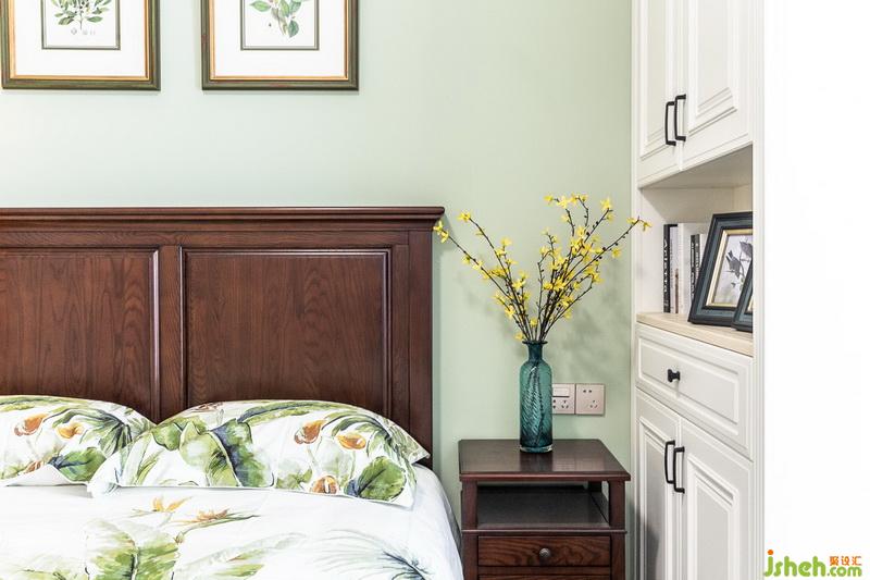 我們在設計的過程中,跳出了傳統(tǒng)的配色框架,已灰綠色床頭背景和綠色棉質床品相呼應配以黃色裝飾提亮整個空間為方便讓人平時放置一些常用藥品和物件在靠窗一側增加了一個儲物柜,并在靠窗位置設計了與原飄窗高度的儲物矮柜擴大飄窗,變成一個多功能的設計,既能儲物,又能喝茶休憩。在松軟的坐墊上,沏上一壺茶,享受午后閱讀時間,盡情沐浴溫暖陽光。
