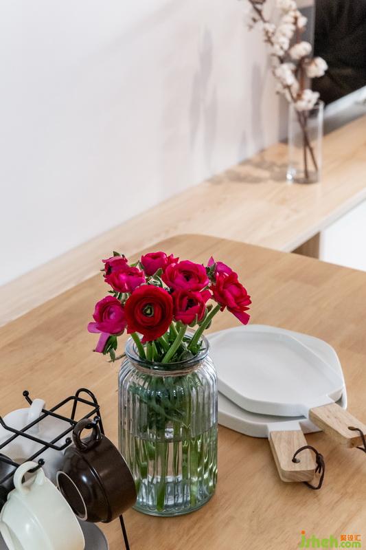 白色與木色搭配形成的儲(chǔ)物卡座,實(shí)用與美觀形成一體,原木色餐桌無形跟卡座相映成趣。閑暇時(shí),沖一杯咖啡,擺放一束花兒…