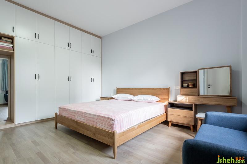 淺灰色調主臥,搭配深藍色休閑沙發(fā),配上天藍色窗簾,靜謐中體現著細致,無處不讓人感受著溫暖與寧靜。