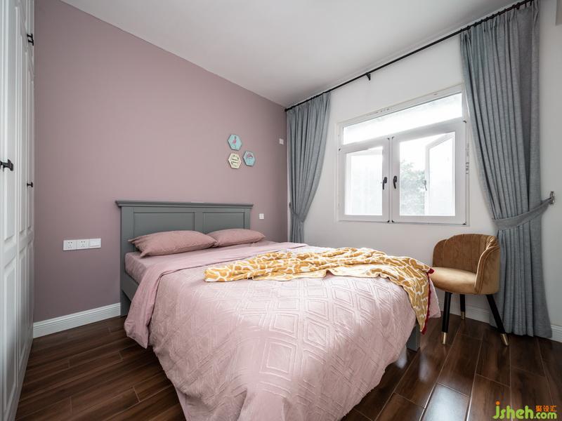 同一個世界同一個蘿莉,小朋友對粉色的喜愛你們一定能想象,但是業(yè)主不想要讓兒童房太過卡通,為中和兩者需求,不飽和的灰粉成為空間背景首選,家具挑選也簡單硬朗,床品也沒有大多兒童房的卡通圖案,而是選用磨毛格紋處理的灰粉色,通過這些小細節(jié)滿足小蘿莉的公主心。書桌暫時還用不上,所以在床邊擺放了一個主人房同款絲絨單人椅,既做床頭柜用,也是空間顏色的點綴。