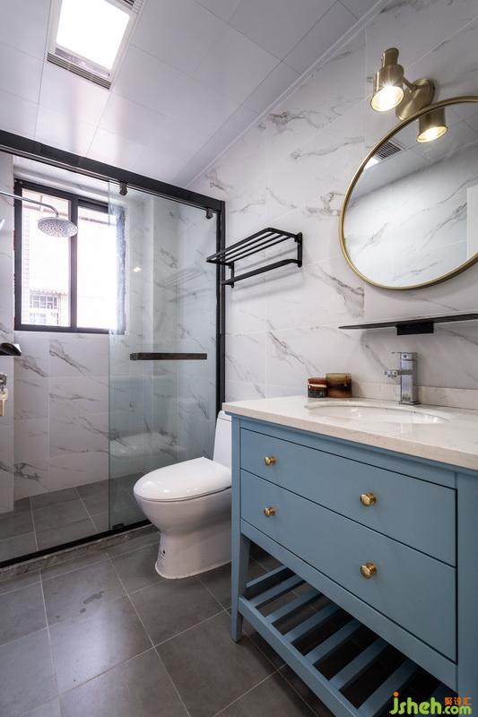 衛(wèi)生間廚房:原本廚衛(wèi)采光很好,初期考慮選用客廳同系列仿古磚,得知后期會在窗外加裝電梯的消息之后果斷換做白色墻磚,廚房靠窗位置原本是洗衣機和洗碗機的空間,考慮到暫時還用不上,這個位置便臨時充當了早餐臺的角色,衛(wèi)生間:藍色浴室柜作為空間點綴色,衛(wèi)生間也要清新活躍。
