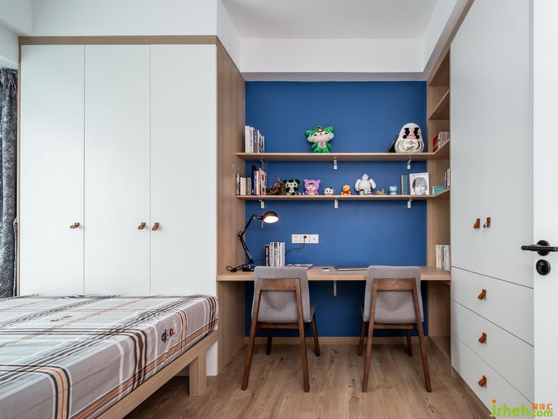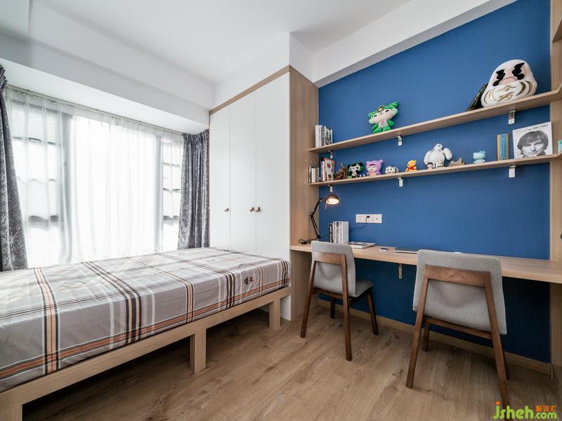 舊居帶過來的家具并不會與整體簡約格調(diào)違和,細(xì)木邊框裱好的從鳳凰帶回的蠟染、深藍(lán)色棉麻窗簾、與陪伴多年的老木頭,讓老人的新臥室穩(wěn)重又素凈。