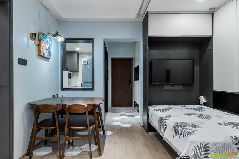 深淺灰白色六角磚如行云流水般呈現(xiàn)出來,拼接木色紋路自然木地板,自帶時尚與精致;踏進(jìn)家門那一刻,感受到卸下所有的疲憊,可以活一個比較簡單,比較直接比較充滿家庭氣息的生活。