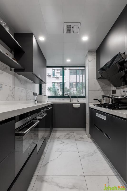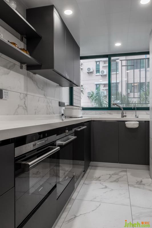 高級(jí)感灰色櫥柜,超大U字型操作臺(tái),可與餐廳傳遞美食與感情的小窗洞,無(wú)形散發(fā)出高雅格調(diào)的煙火氣息。
