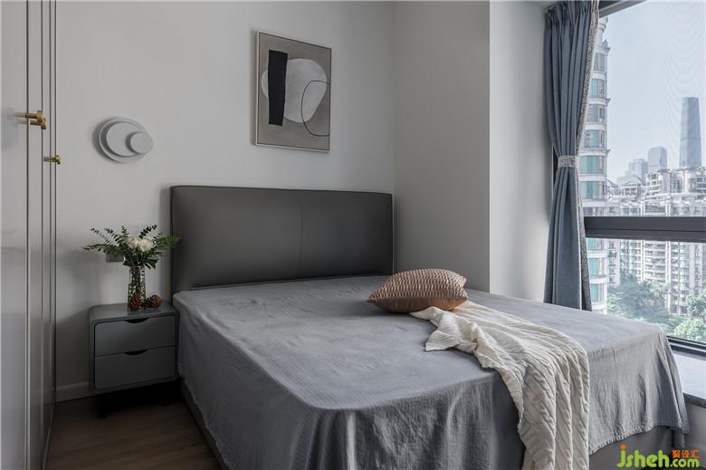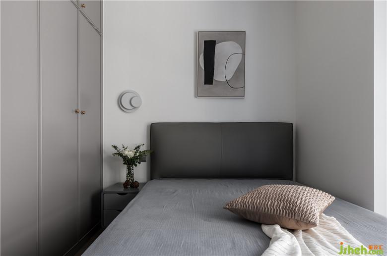穩(wěn)重的淺灰色門(mén)板,與深灰色的皮質(zhì)床靠背,用在長(zhǎng)輩房更適合不過(guò)了,簡(jiǎn)約的白色燈具,棉麻材質(zhì)的窗簾,使長(zhǎng)輩空間更加溫馨。
