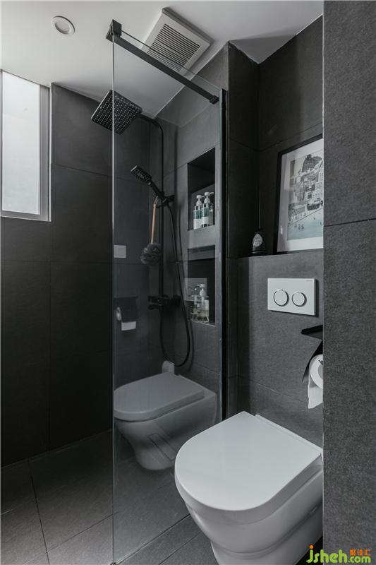 原有衛(wèi)生間空間太小,只有2平方多,根本沒有辦法做到干濕分區(qū),現(xiàn)方案中改動(dòng)了主人房的房門,從客廳進(jìn)入,把洗手臺(tái)外置,做成一個(gè)獨(dú)立的盥洗區(qū);里面的空間做成淋浴區(qū)和壁掛式馬桶,從而做到了干濕分區(qū)。