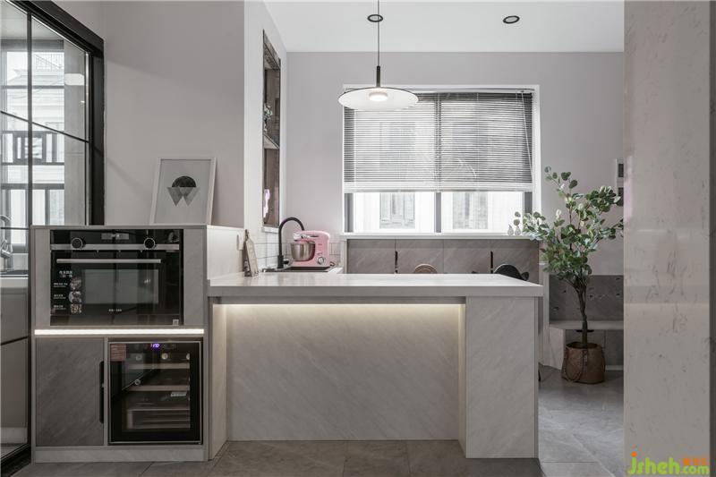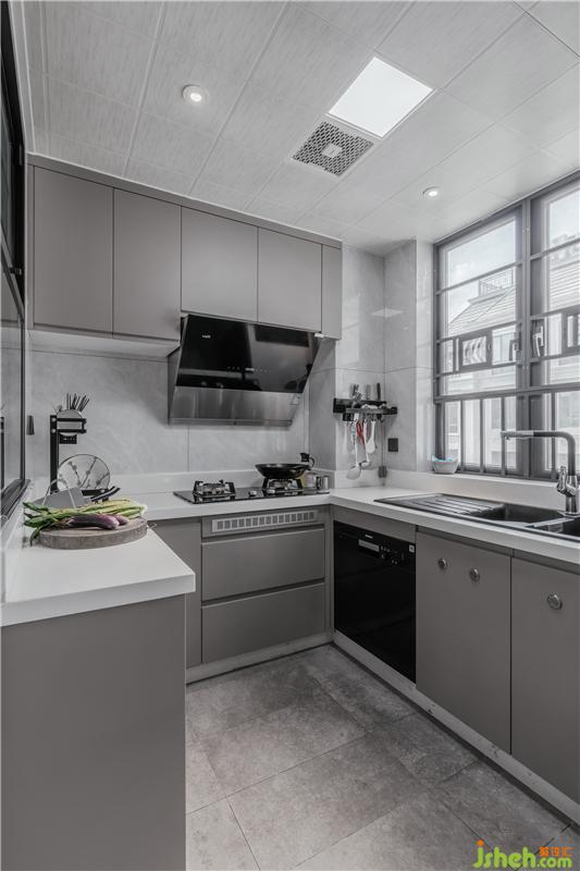 中式廚房延伸了本套案子整體所表現(xiàn)的灰調(diào) ,一如既往的干凈與明亮。