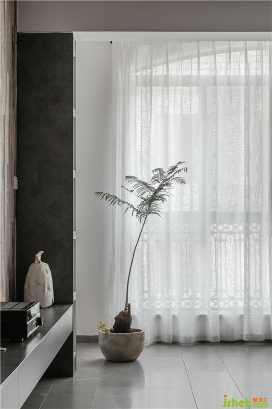電視背景的一角,簡(jiǎn)單的一株植物在此就已足夠,空間不用太滿,留多一點(diǎn)給日后生活填充的地方。