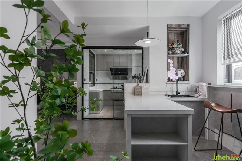 一樓的樓梯間開了一個窗洞,窗戶的設計是上下式,主要是考慮這里是通道,不能影響正常的通行,而這里的窗洞設計最初是為了增加樓梯間與窗戶后面的開放式洗手盆的通風,最后發(fā)現(xiàn)也增加空間的朦朧與美感。