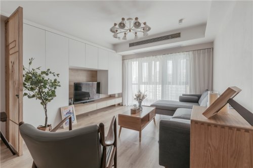 客廳,我們更注重交互性,通過與陽臺的融合,及去傳統(tǒng)化的客廳看電視待客的方式。更加推崇一些聊天,游戲,娛樂,運(yùn)動,所以客廳可以是一個多變的空間。