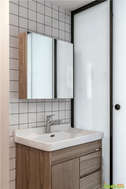 衛(wèi)生間,我們在2.5㎡里實現(xiàn)了四分離的設(shè)計??紤]了整體的效果,我們把洗衣烘衣機外置了,馬桶和淋浴區(qū)也可以單獨使用。