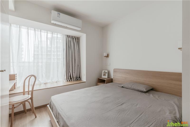 主臥的整體設(shè)計是非常溫暖,寧靜的,柜子的木色選擇,以及家具的風格都很有考究,衣柜的一側(cè)作為書桌滿足了女主人的辦公,超大的飄窗,讓空間顯得更寬敞明亮。