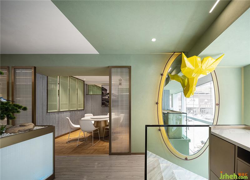 “體驗店”對餐廳設計要求極為細致,其首要功能是線上店的廚房加工點,其次才是堂食的功能,留給就餐的面積就會很精簡。為了有效的利用面積和營造絕佳的就餐體驗,我們設計團隊不斷的優(yōu)化動線和整合功能,打造了一處簡約高效、兼?zhèn)鋫鹘y(tǒng)與時尚的藝術餐廳設計空間。