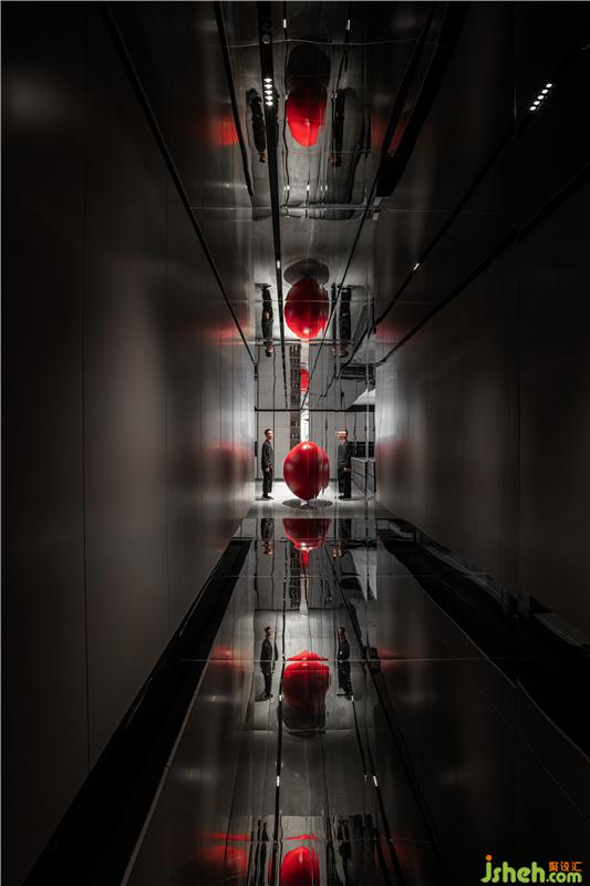 如同無處不在的紅色球體,與神秘黑色主調(diào)的設(shè)計貫穿始終,在未知與已知之間表達時間和空間,用褪去世俗的遮蔽,展現(xiàn)本真的力量。