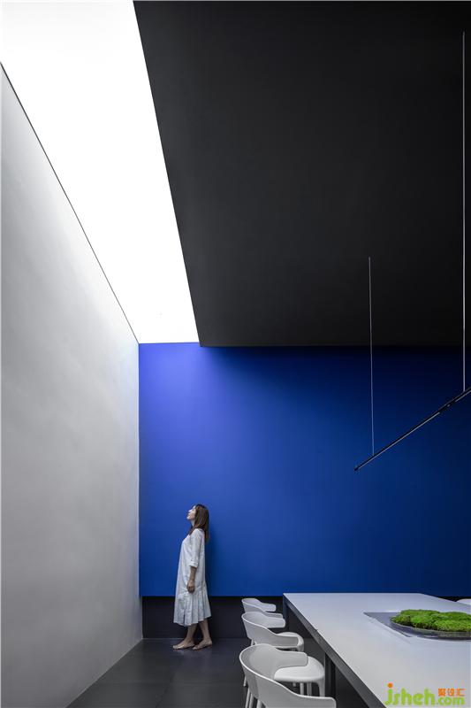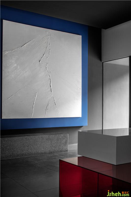 藍(lán)色交匯著紅色光影, 一切在緩緩的時(shí)間流動(dòng)中充滿了凝聚的力量,印證著在同一享受的空間里原本就沒有真正異己之物的存在。所有可透視的表象明見性,使存在本身變得不由分說,空間也由此相互獨(dú)立、融合,從而創(chuàng)造有趣生動(dòng)。