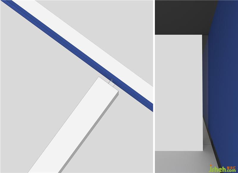 進(jìn)入總經(jīng)理辦公室的空間過渡,從一個(gè)空間到另一個(gè)空間用深色墻面暗示完成狀態(tài)的過渡;