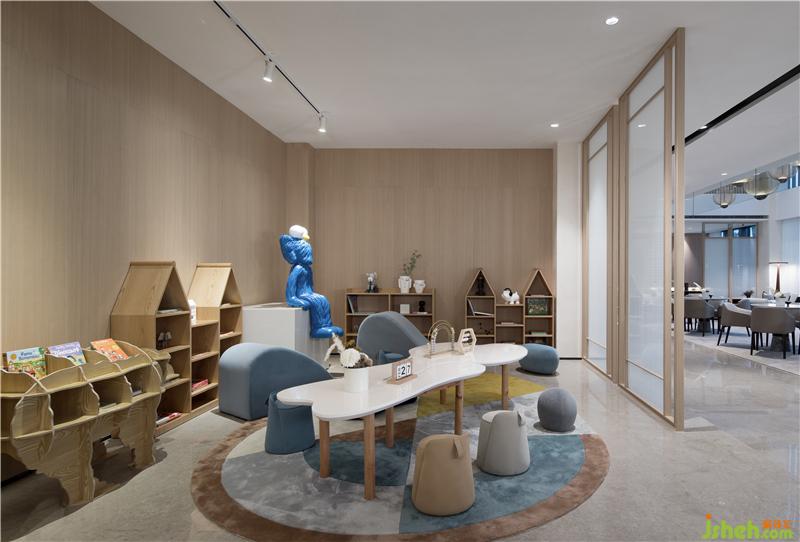 小朋友們?cè)诖随覒蛲鏄?lè)。巨型藝術(shù)雕塑KAWS顯得格外亮眼,小小的家具錯(cuò)落有致,書(shū)架上隨處可見(jiàn)童趣滿滿的繪本圖書(shū),可愛(ài)的卡通擺件點(diǎn)綴著每個(gè)角落。