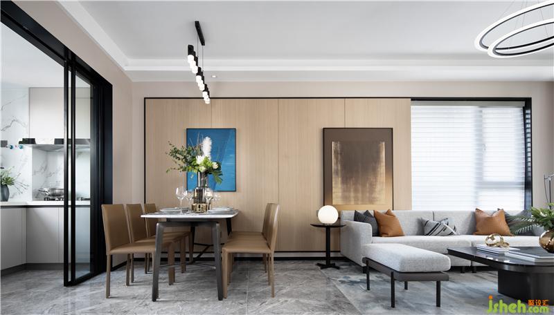 淳則之居為四室兩廳三衛(wèi)的疊拼戶型,整體面積為119平方米。本案選用暖灰色為主色調(diào),局部木紋肌理和大理石,使空間散發(fā)出當(dāng)代的氣息。樣板房設(shè)計(jì)