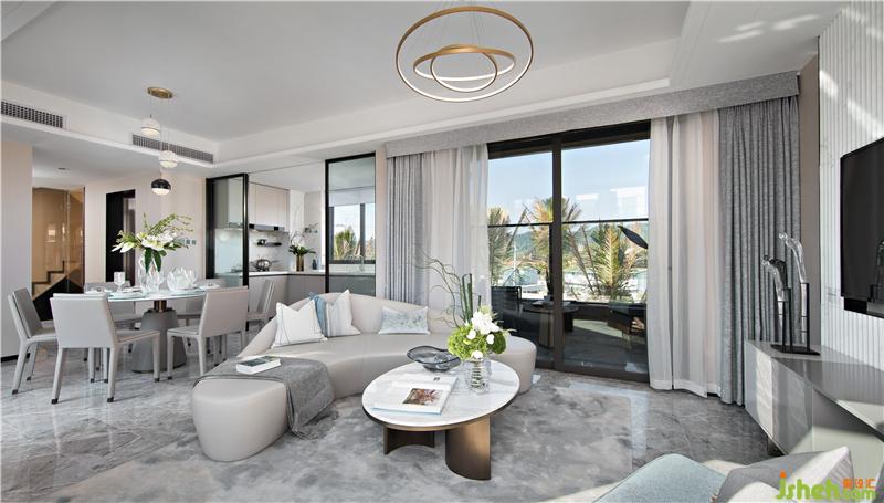 季悅之居為三室兩廳兩衛(wèi)的疊拼戶型,整體面積為142平方米??臻g主色調(diào)為淺灰色,微妙的灰色變化,層層延伸,營(yíng)造緊密而又輕盈飄逸的變化。綠植、陽(yáng)光、窗外的風(fēng)景與室內(nèi)的空間,虛實(shí)相生,交融一體。樣板房設(shè)計(jì)
