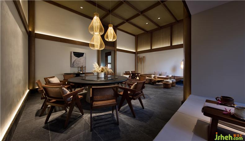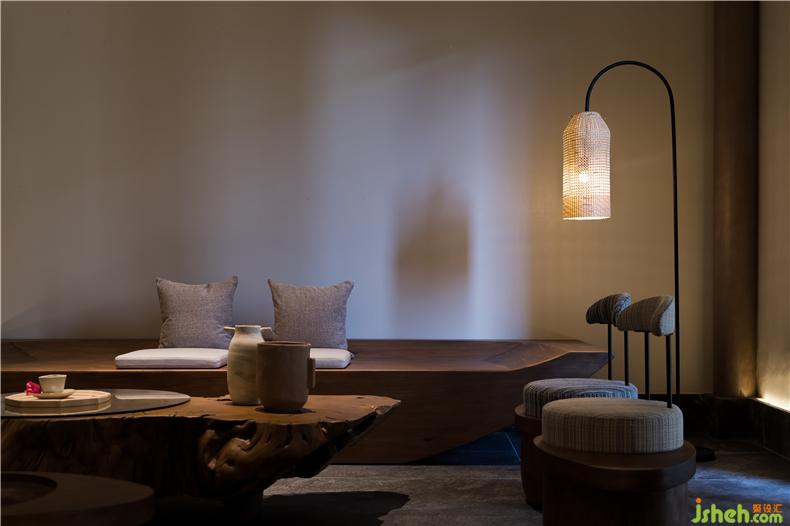 休閑區(qū)沙發(fā)位融入編織的元素,與木柵格隔斷相呼應(yīng),裝修設(shè)計(jì)家具粗狂的石材與細(xì)膩的軟包碰撞出古樸安靜的感覺(jué),做舊木制單品以及火爐裝置的點(diǎn)綴更顯漁鄉(xiāng)漁民的生活氣息。