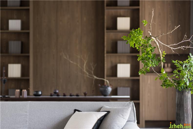 家具以樸實(shí)的實(shí)木色與莊嚴(yán)的深色皮為主,穿插著金屬的燈具,表現(xiàn)出低調(diào)的奢華感。