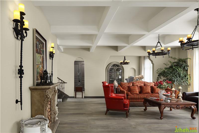 進(jìn)入軟裝搭配階段后,業(yè)主委托我尋找一款合適的壁爐放在客廳。尋遍市場仍無中意款式,直到那個雨天在庭院的角落看到了落滿灰塵的一個砂巖壁爐,眼睛立刻放光。將其清洗干凈安放到這里,再次化腐朽為神奇。油畫雖不是大師作品,但細(xì)膩的筆觸,流淌的色彩仍然堪稱經(jīng)典。淺灰木紋仿古地磚按照設(shè)計的要求切割拼貼,古樸的韻味透出了高級時尚感。