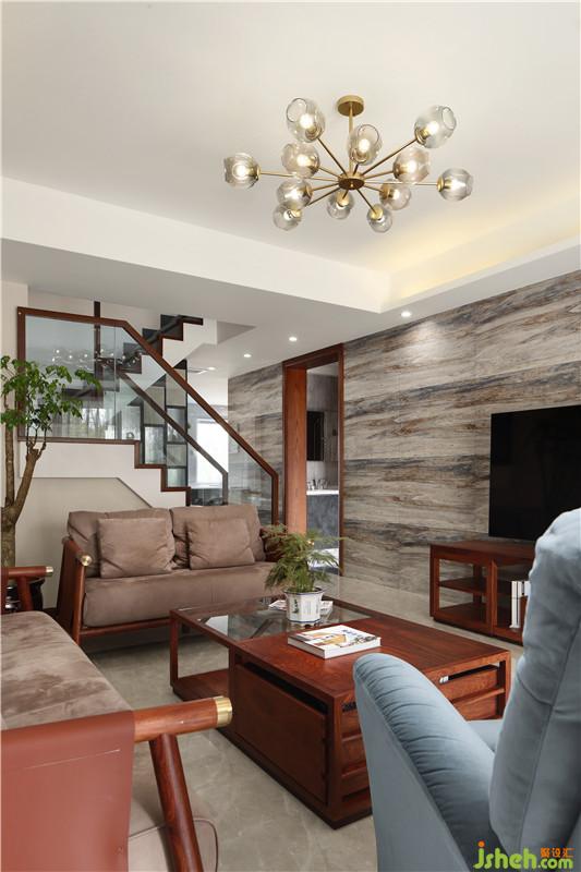 l 客廳 l 閱梨家具確實能夠將時尚東方的理念表達清楚,棗紅色木質配以金屬的配飾,精致優(yōu)雅。設計師調配的墻面色專屬此空間?;宜{的休閑沙發(fā)以小博大,掌控了空間的平衡感。大型水墨畫寫意出生活的態(tài)度。在選擇電視背景材料的時候,第一時間被這款“行云流水”打動,最終是它讓空間“流動”了起來。室內設計師