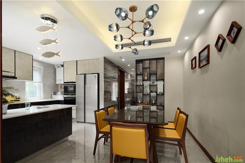 l 餐廚 l 還記得當年斐雪派克邀請我寫社交廚房文章的時候,中國的社交廚房遠沒有現在這般普及,短短幾年時間,幾乎成了年輕業(yè)主的生活標配。廚房在生活中所扮演的角色遠不止于烹飪美食,還可以“烹飪”出美好的愛情、美好的親子關系、對未來生活的信心。餐桌旁的裝飾柜維護了樓梯的獨立性,也保持了餐廳的完整,最重要的是穩(wěn)定了從玄關到餐廳的透視效果。室內設計師