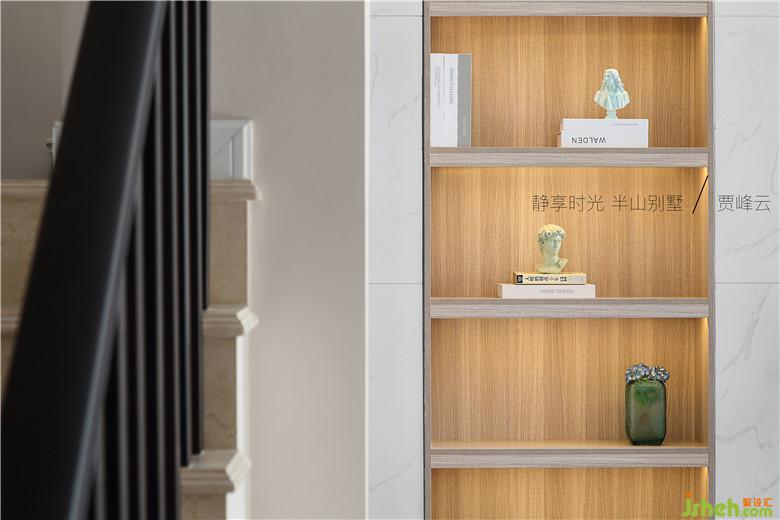 實木隔板與灰陶花瓶相得益彰
