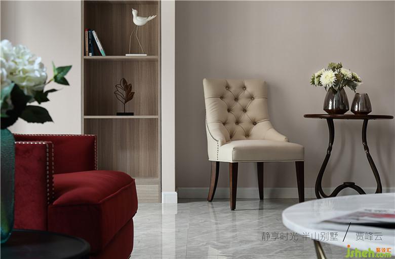 邊廳設(shè)計(jì)了休息區(qū)品鑒藝術(shù) 思想交流抽象畫暗示了業(yè)主自由不鶩的心靈