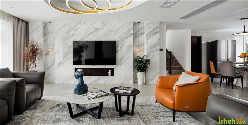 電視背景用的是老礦爵士白天然石材,我喜歡這種水墨流淌的感覺,經(jīng)典又不失時(shí)尚感,也能增加空間的藝術(shù)氛圍。