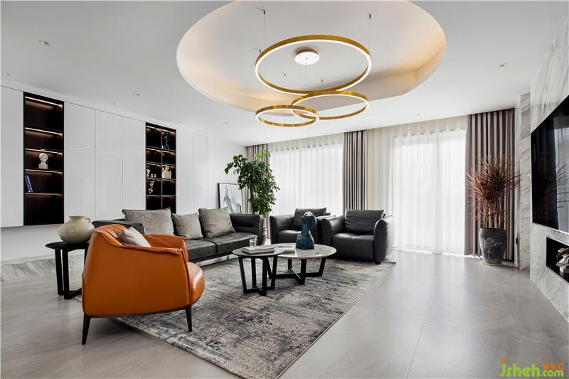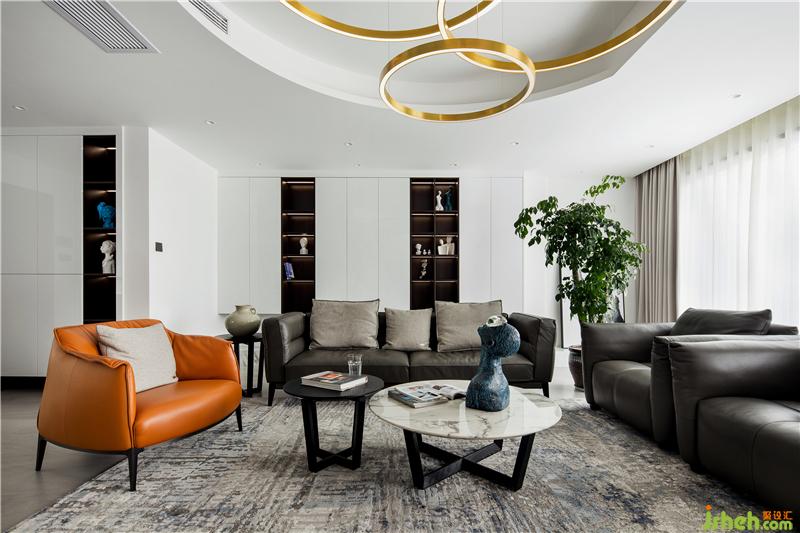 空間的硬裝軟裝色彩調(diào)和了中度的灰。橙色是歡樂的跳躍,宛如指尖的音符。皮質(zhì)的沙發(fā)寬大舒適,我們?nèi)ャ紤械奶上戮筒幌肫饋?lái)。地毯的名字叫香榭麗,家里每一件物品都是主人的喜愛。
